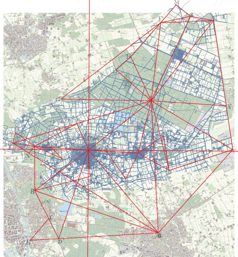 Daarna werd er een driehoeksmeting ingemeten en beschreven over de gehele gemeente en getekend met de kerk als nulpunt.